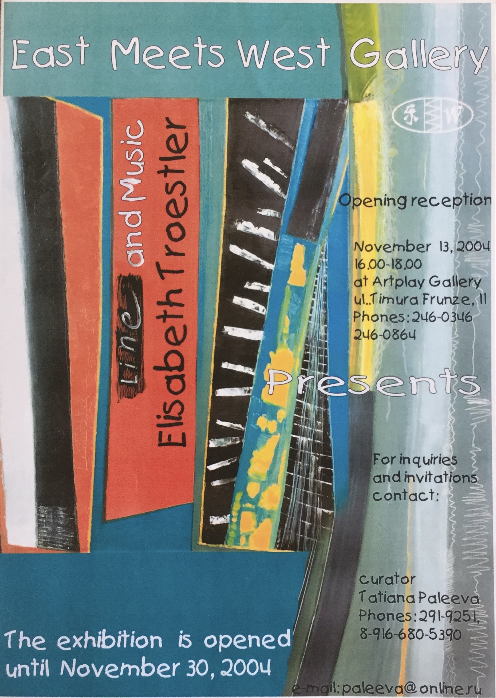 La musique, qui est un ancrage dans ma vie d’artiste, a inspiré mon travail plus particulièrement pour une étude sur la verticalité en musique intitulée « Line and Music » exposée à Moscou en 2004 à la Art Play Gallery, avec pour commissaire d’exposition Tatiana Palaeeva.
