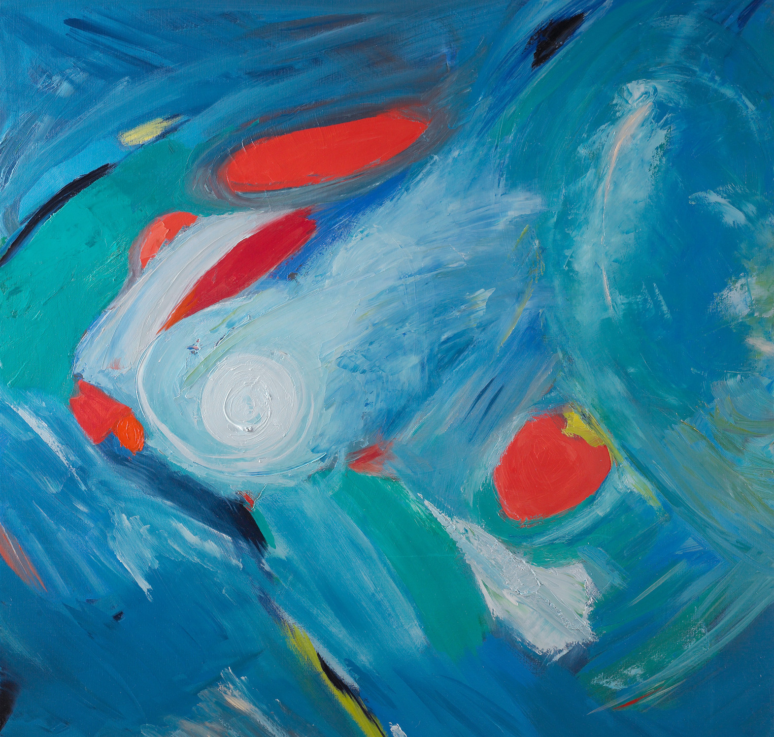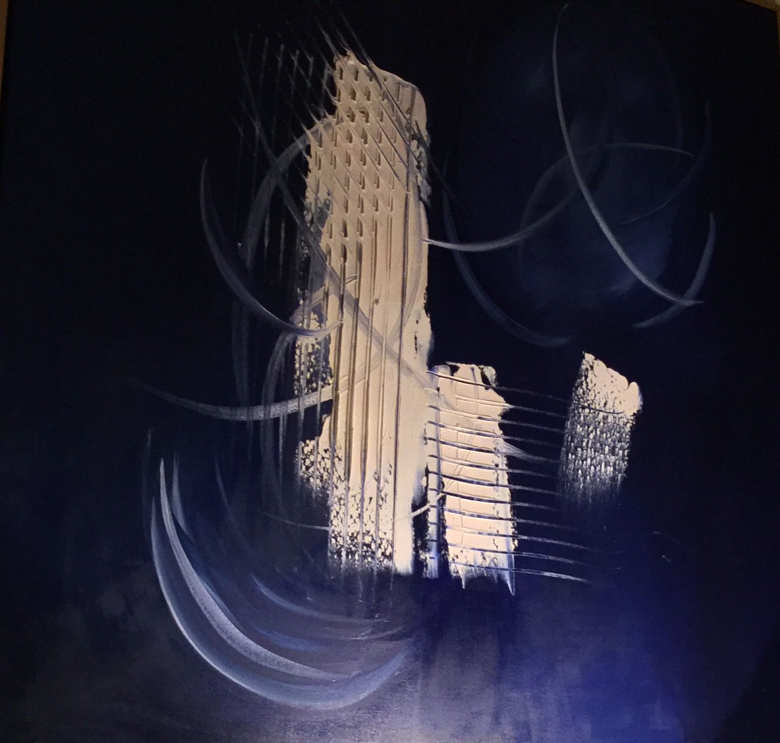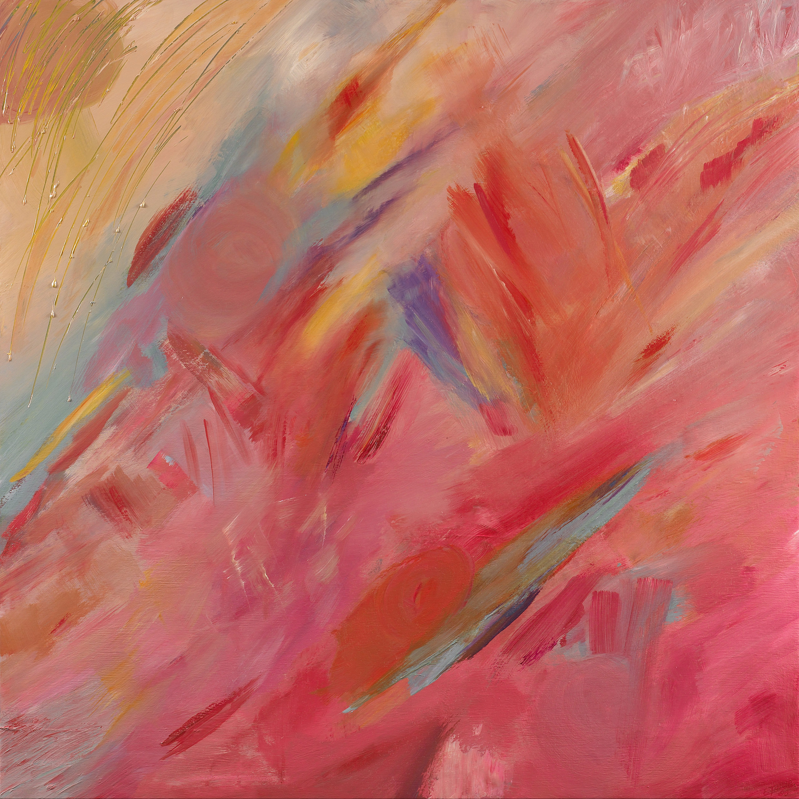 Le mouvement qui s’étire au-delà de la toile me définit. J’aime l’ampleur du geste proche de la danse. Ce travail est autant physique que mental ainsi le réel et l’imaginaire font bon ménage et génèrent l’énergie dont j’ai besoin pour avancer, ou tout simplement vivre.